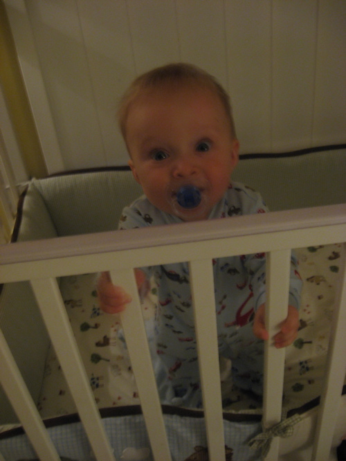 Standing in His Crib… August 11, 2009August 11, 2009 Jodi Uncategorized So, this is the cuteness that greets us these days in the morning and after naps…