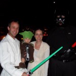 Here’s one of us as a family, and one of us on the way out to trick or treat, where we found Darth Vader roaming the street. HaHa!!!
