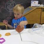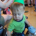 I took the boys to the Discovery Center again…this time for the Parents and Tots program. Mrs. Joy read “If You Give a Pig a Party” and the kids came dressed in their pajamas, wore party hats, and made noise makers (out of paper plates, beans, and streamers). The boys had a blast…they love that place…it’s custom-made for little explorers.