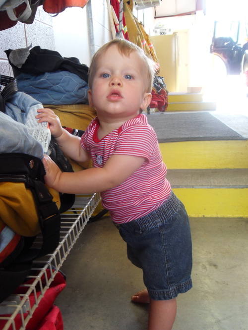 In his fifty-first week, Xander is: trying and loving eggs and strawberries; doing okay with a preliminary re-introduction to dairy (here’s hoping…); saying “na na” for “banana”, “nih nih” for “night night”, and “mmmm” when he likes what he’s eating; climbing out of his exersaucer (he was never a big fan anyway…too much to see and do); figuring out how to blow kisses; and perfecting his walking skills every day.