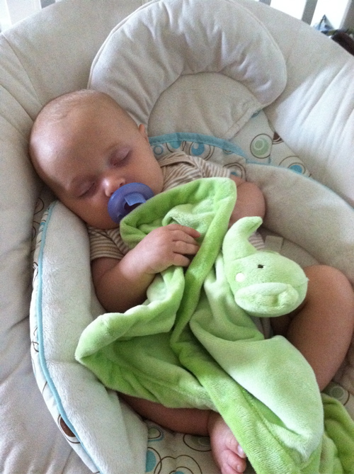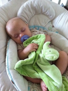 In his thirteenth weeks, Roman is: talking, squealing, and delighting in familiar faces (he loves having conversations); starting to drool; noticing his hands (he likes to bring them together in front of his face and stare at them); and batting at toys on his activity mat.