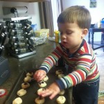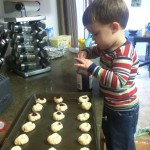 Xander loves helping me in the kitchen. So while Jonas was at preschool and Roman was napping this morning, he helped me make a batch of some of my favorite holiday cookies to give as gifts, Raspberry Almond Thumbprints. They’re the perfect cookies for making with little hands.