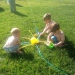 Gotta love the dollar store for this $6 find (just like the one that the boys played in at MeMe and PaPa’s on Memorial Day)!!! Xander is definitely the bravest of the three boys when it comes to the sprinkler…he has no fear and could play in it all day long.