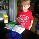 Since Xander will be starting preschool this fall (his first day is in just a few short weeks), I thought I’d give him a lunch bag practice round at home today. Jonas joined in too…they were so adorable…almost made me want to pucker up at the preciousness of their sweet little hearts being such big boys and such little boys all at the same time. (Oh and yes…that’s marker on Jonas’ face…and arms and legs…he wanted to be a Christmas tree today…ha!)