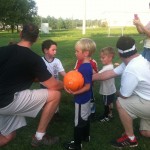 Jonas was WORN out after practice but seemed to have fun with all of the different drills (his favorite of which seemed to be chasing his coach while holding a neon plastic square with a hole in the center in front of his face).