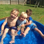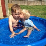 It was so hot this morning that I filled up the baby pools in our backyard early… I thought the boys might enjoy cooling off while working out some of their boundless energy.