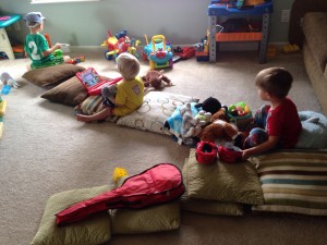 The boys and I had fun playing train this morning…we took turns conducting and taking tickets…we stopped at Ah-Ah Land, Friend Land, and Candy Land…and we picked up friends and pretend sweet treats along the way…fun times just hanging out at home.