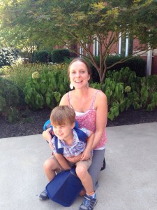 He met his sweet teachers at his allergy meeting and at his Get Acquainted Day last week and had warmed up to them a little bit but DEFINITELY started putting the breaks on this morning when he realized Jonas wasn’t the only one headed to school. On the way there, he said, “Mommy, I want to be a baby so I don’t have to go to school.” How much alike we are…I remember feeling that same way…not wanting to grow up…when I was a little girl. He started bawling as soon as we pulled into the parking lot. Roman started pitching a fit too (oh the timing of siblings), but he just wanted to wear his backpack (my big boy diaper bag for him). So there I was…carrying a crying Xander and his backpack while Roman be bopped in like he owned the place, toting his own and keeping me from losing it while I laughed at his cuteness. Roman even tried to get into the classroom while Xander was sprawled on the floor crying in front of the door. Poor buddy…I’m so thankful for the compassion that God has revisited upon my heart for Xander that’s competing to take the place of the frustration and impatience that tends to crop up when I see so much of my young self in him. I’m just trying to coach him through it…there are great gifts that go along with all of that sensitivity…so I’m just trying to concentrate on those in moments such as these and pray for the wisdom of when to back off and when to give him a gentle (if uncomfortable) nudge. The gentle uncomfortable nudge was definitely the way to go today…when I picked him up, he was all smiles with two pictures in hand that he made for me…dear sweet boy. Tom was at home with a sleeping Roman, so I took Xan-Man to Sweet CeCe’s to celebrate his bravery in making it through his first day even though he was scared. Yay Xander…Mommy’s cheering you on, buddy!