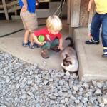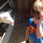 Xander and Roman and I headed out to Noble Springs Dairy this morning for a tour. They usually really dig things like that, but for some reason…this time around…they became very quickly NOT INTO IT in a big way. Xander does not do hot or walking long distances. It turned out to be much warmer than I thought it would be, and my thought that I could get away without bringing the jogger stroller since I have such big boys now…was wrong!!! Looking back on it, I suppose it was quite funny but not in the moment to have two fairly big boys pitching laying down fits and refusing to walk while everyone else went merrily on their way. It wasn’t surprising to me in a way with the week I’ve had but still a bit of a kick in the pants on the way out the door at the end of the week. Needless to say, we left early. They were both excited about the barn cats, and that’s about it. The picture of Xander with the goat sticking his tongue out at him is pretty telling (definitely how I felt about my boys’ attitudes, obviously how the boys felt about the farm, and most likely how the farm animals, farmer and fellow tourists felt about my tantruming, wailing children). So there!
