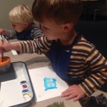 Xander, Roman, and I went downtown to the Frist this morning to check out ArtQuest, an interactive exhibit for kids. The admission was free with canned goods donated to the Second Harvest Food Bank. They had a blast (and amazingly enough it was not super crowded which was a big plus)! They loved painting with watercolors, doing touch screen art, building with magnetic blocks, drawing on windows with dry erase markers, sketching on an easel, making crayon rubbings, and printmaking.