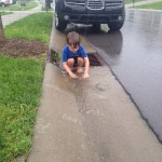 Xander and Roman and I stepped outside to check out the rain this afternoon. Â I was finishing up a phone call with Uncle Kerry and enjoying the rain drops…the boys started playing in the puddles and by the time I hung up…we were all soaked!!! It was one of those settled in kinds of rains (with no thunder or lightning)…the kind that I loved to play in when I was a child. Â So, I happily jumped into their play time, experimenting with floating different things down the rain water river in the gutter and enjoying the feeling of the water rushing over my feet. Â Soon, we had two little neighborhood friends join in the fun. Â (Even Petra was out there…usually she’s not a huge fan of rain but she’s always up for hanging out and making sure the boys are safe.) Xander and Roman took a long soak in a warm bath afterwards and put on pajamas fresh from the dryer. Â What a blessed spring afternoon!