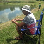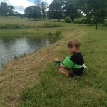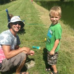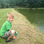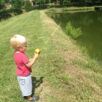 After a worm search at every gas station in town, Tom ended up digging some up from our very own backyard. He’s been working on a water feature, so there were several hanging out in the mud.  While he was working on that, sweet little Xander puckered up and started crying because he realized the worms that Daddy found were going to have to go on the hook and were eventually going to die so we could catch a fish (he’s so much like his Mommy).  He recovered and had fun fishing with the best of them.  We didn’t catch anything, but we had fun trying…