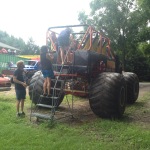 The boys and I had the unique opportunity to take a ride on a monster truck this morning! Â We went to a birthday party for one of Xander’s best friends from preschool, and his dad works on monster trucks for a living. Â How cool is that! Â I was probably more excited than the boys…especially thinking that I finally got to do something Tom hasn’t done yet…ha!
