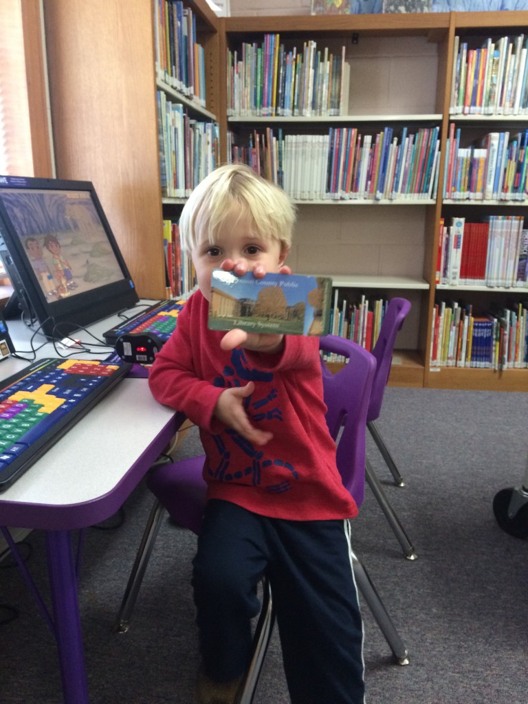 One of the perks of being a FOUR YEAR OLD is getting your very own library card!!! Roman was super excited about it. 🙂