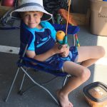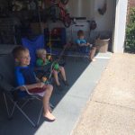 Tom set the boys up with their fishing poles this afternoon in the front yard, and they had a BLAST casting and reeling over and over again. They ended up camping out in chairs in the garage and trying to get their bobbers into “paradise” (the water table). I love the creativity that comes on a slow summer Sunday afternoon.