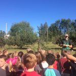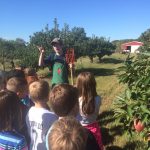 Xander went on a field trip with his class (and all of the other 1st grade classes) to a local orchard this morning. I loved being able to be there with him. The weather was perfect (such a nice fall-ish change from the long stretch of 90 degree weather we’ve been having). It was so sweet just holding his hand and walking through the orchard. The orchard guides talked about tree spacers, grafting, bees (queens, drones, and worker bees), orchard ladders, picking apples, different types and varieties of apples, apple hummus, and apple cider. I think Xander enjoyed it. (He was sad that he only got to pick one apple though…we’re used to picking a bag full at the apple orchard we visit every fall…but I think he understood that if every child picked a bag full they wouldn’t have many apples left.) Yay for fall, yay for apples, and yay for a field trip with Xander!!!