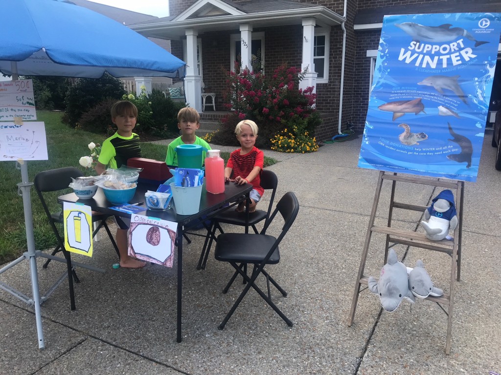 The boys did a lemonade stand this afternoon to raise money for Winter at the Clearwater Marine Aquarium. They helped make cookies (snickerdoodles, oatmeal chocolate chip, and oatmeal raisin) and created some really fun, colorful signs. They each had a job and rotated (working the cash register, scooping ice, and pouring lemonade). We were excited to be able to raise $21 (every little bit helps) that we’ll be sending off in the mail tomorrow which will go towards caring for Winter and all of the rescued marine animals at the Clearwater Marine Aquarium.