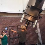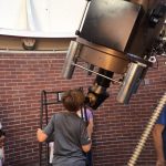 First, we checked out the star model display in the lobby (“an interactive model that displays the positions of the 100 nearest and 100 brightest starts in the night sky”). Next, we climbed the stairs to see the Seyfert Telescope, where we learned about the telescope and got to take turns looking into it to see a star named “Beetle Juice”, which is a part of the Orion constellation. Then, we met in the library to look at the Hubble Space Telescope model, the observatory’s original planetarium dome, and a collection of meteorites and tektites. Afterwards, we gathered outside to hear about the sundial. Last, we followed a wood chip path to check out the solstice and equinox alignment stones and see the star chamber (“the only such installation of a camera-obscura and sundial in the world”).