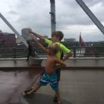This week has been a little disappointing for us. The boys and I drove out to Pump It Up on Wednesday for some inflatable jump time, and they were closed for cleaning. Then, on Thursday, we drove out to the Cumberland Park Sprayground, and they were closed due to inclement weather. Ugh!!! Oh well. That’s life. We ended up taking the glass elevator and walking across the pedestrian bridge in the rain anyway because they just love that part. Here’s to the last day of summer before school starts…