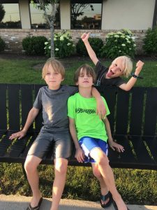We celebrated Tom’s birthday tonight with dinner out and, of course, chocolate cake! After dinner, I snapped this picture of our three wild boys who make life so colorful…