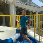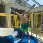 Jonas, Xander, and I spent a few hours at the Patterson Park Indoor Pool this morning. It was the perfect place to be during this heat wave. We went down the water slide, ate lunch in the sun, and played football in the water.