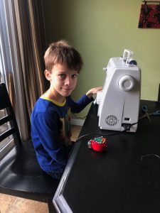 Xander asked me to show him how to make patchwork bookmarks today, so he picked out several fabrics that he liked and we worked through all of the steps of sewing them together. Sweet boy!!!
