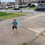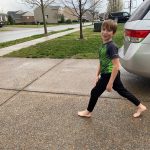 Jonas and Roman both completed 21 Questions for Yellow and White Belts and will be receiving a star patch upon their return to the TaeKwonDo studio. Here they are finding out how many front stances and middle stances it takes to get to the end of the driveway…