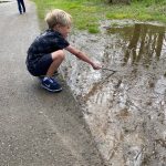 For Science in the afternoon, I was super pumped up to get out of the house for the first time in a week or so and take them to Crockett Park for a nature scavenger hunt!!! BUT I got a ton of lip and whining from Xander and Roman and ended up having to have a Come to Jesus with them on the way, which in turn soured things for me. Tom was a bright spot, as always, and joined us at the park…he knew I was struggling. Jonas, Xander, and I found most of the things on our nature scavenger hunt list and actually had fun doing it. Roman, on the other hand, boycotted the scavenger hunt and chose to lag behind and pout…although he did get in some good playing in the mud time. Tom saved the day with football throwing and games of Pooh Sticks (racing sticks) in the creek.
