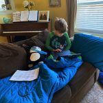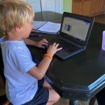 Jonas answered one of his teacher’s weekly questions (“If you could be invisible during the CoVid crisis, what would you do?”) and answered several questions about poems, read on Epic, progressed at his own pace on Kahn Academy and completed a few math worksheets from his packet, watched a few science videos (Forces and Motion and Properties of Matter) and answered questions about them on Freckle, played Rummy and Mexican Train Dominoes with me for Mommy and Me Time, and had a Zoom meeting with his best friend.