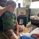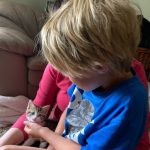 The highlight of our day was going to Aunt Julie’s house to meet her two new kittens, Bowie and Hendrix!!! Uncle Ken was so great to hang out with two of the boys outside at a time, playing with a remote control car and throwing the frisbee with them, while one of the boys hung out with the kitties, Aunt Julie, Jordan, and I inside. It worked really well (great idea, Aunt Julie!) to keep the energy level down. Of course, one of the kittens fell asleep in Xander’s lap (he’s our resident animal whisperer). Look at the preciousness…