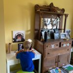 It went so much better than I was expecting! Jonas will start and end school an hour earlier than Xander and Roman this year…which might be a little dicey when they’re remote learning. So, I put together a list of upstairs and outside things that they can do while their brothers are schooling and they’re not. While Jonas was schooling and before Xander and Roman started…I threw the football with Roman (we made it to 65!), and Xander made origami creations (recently, that’s his happy place)…