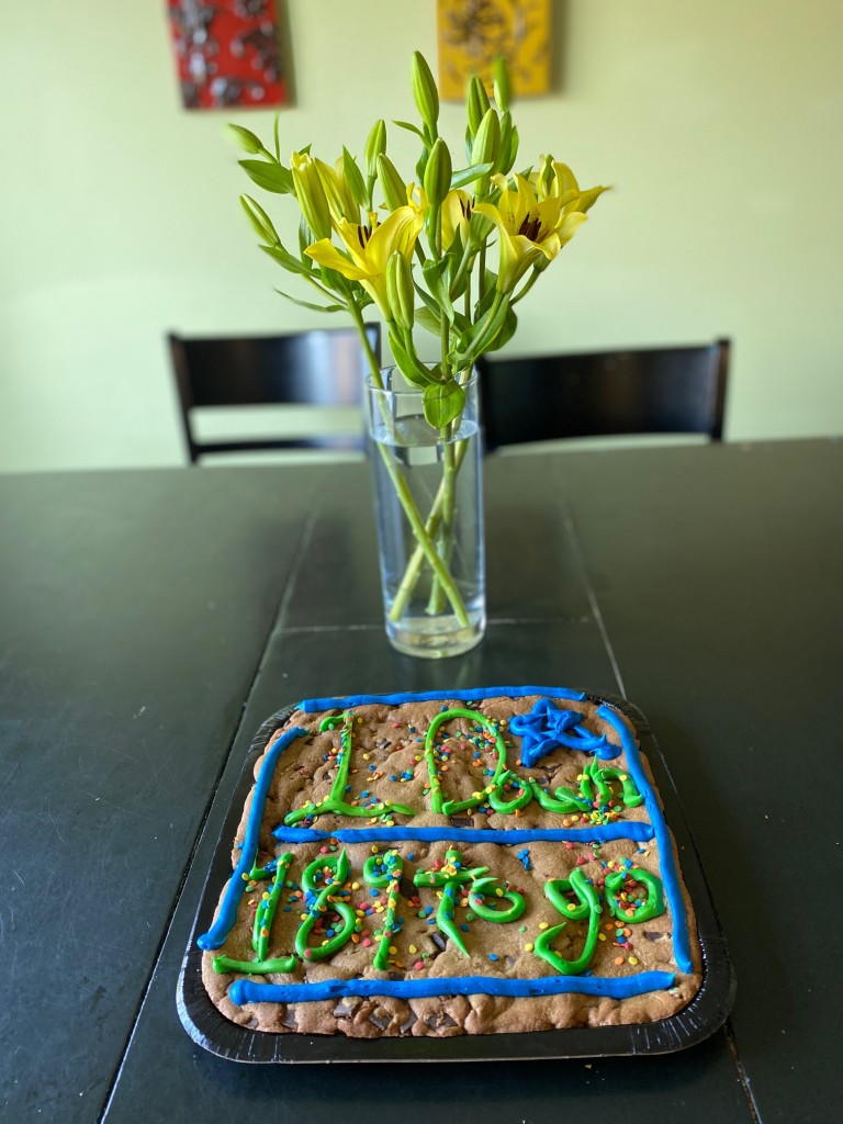 All in all, it was a good day. And the boys really enjoyed running around and playing outside after their first half day of school. Tom was super sweet and thoughtful and came home early with flowers for me and a cookie cake for the boys…he’s the best…totally made me tear up. Team Seyfried!!!