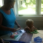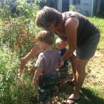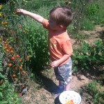 We went out to MeMe and PaPa’s this morning for a visit. The boys picked tomatoes with MeMe in the garden, chased the cat, played play-doh with PaPa and Aunt Jean, joshed around with Aunts Julie and Jeanne and Cousins Jordan and Dylan, and ate a lion’s share of the super yummy lunch MeMe made. Here are a few pictures of our Sunday fun…