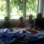 We spent ten days in a great lake house (thanks to Grandpa and Grandma Seyfried) on Lake Gaston in North Carolina with Grandpa and Grandma Seyfried, the Seyfrieds, the Longs, and the Paccassis. Highlights of our time together included: taking boat rides, going tubing, swimming in the lake, relaxing in the hot tub, fishing, playing pool and four square, having fun with sidewalk chalk and bubbles, doing crafts (tie-dying pillowcases, painting sun catchers, building and decorating little wooden boats, making homemade Gak, etc.), going to mass, participating in the family talent show, watching fireworks, celebrating the 4th of July with Father Anthony (the Ugandan priest from the local Catholic church), roasting s’mores around a campfire, reading, and cooking and eating and cleaning A LOT.