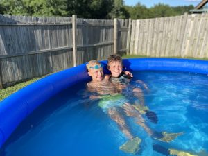This little pool has been the best addition to our backyard this summer. The boys have really enjoyed playing in it…especially one on one with a good friend. Here’s Roman and his buddy, Jay. He’s a great boy who lives two doors down and who Roman has known since preschool. They have so much fun together!