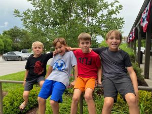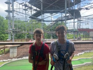 Xander turned 10 today!!! It is so unbelievable to me how quickly they’re all growing up. It was tough this time around for him to figure out how he wanted to celebrate his birthday, but he finally decided on probably our favorite format for birthday parties. He invited his best friend (and next door neighbor), Jeremy, to climb on the outdoor ropes course at Soar with him and Tom, to eat dinner at Cracker Barrel (one of his favorite restaurants), and to have a sleepover (which he’s been asking/wanting to do since school let out for COVID back in March). The bummer was that it started thundering after about 10 minutes of climbing on the ropes course, so they had to forego that plan. (You can see how Xander felt about that in this picture…)