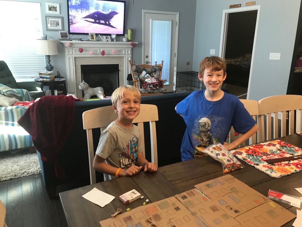 Xander celebrated his 11th birthday a day early with his two best friends, Jeremy and David. Tom took them to Urban Air, we ate dinner (waffles, maple sausage, and fruit at Xander’s request), they swam and jumped on the trampoline in our backyard, they played Exploding Kittens (such a fun game), Xander opened presents and we ate dessert (apple pie and ice cream at Xander’s request), they settled down to watch Gravity Falls, and they built with Legos and laughed a lot before bed.