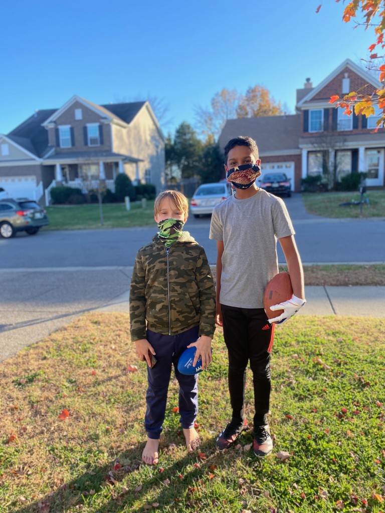 Pranav has been one of his best friends since kindergarten, and he’s doing online school this year. The times that they’ve been able to get together have been few and far between. But, since MCMS went remote this week, they were actually able to get in some quality football throwing time yesterday afternoon. It was so good to see them together. I think Pranav has grown at least a foot since I’ve seen him last!