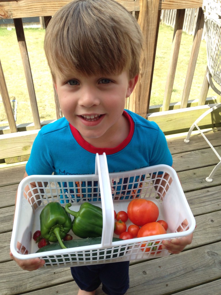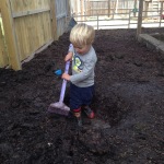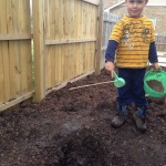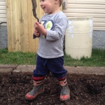 Xander, Roman, and I love Fridays…it’s a day of rest for us from a long week where we don’t have anything planned and often times even stay in our pajamas. Today we ended up deciding to go to Home Depot and hit up their herbs/fruits/vegetables sale…we picked up some basil, cilantro, parsley, lavender, and rosemary to round out our herbs and a few more strawberry plants. When we got home, we put on our rain/snow boots and enjoyed figuring out where we wanted everything to go, digging holes, planting, and watering everything in. It’s so exciting to see the garden taking shape and to share the planting of it with my little guys.
