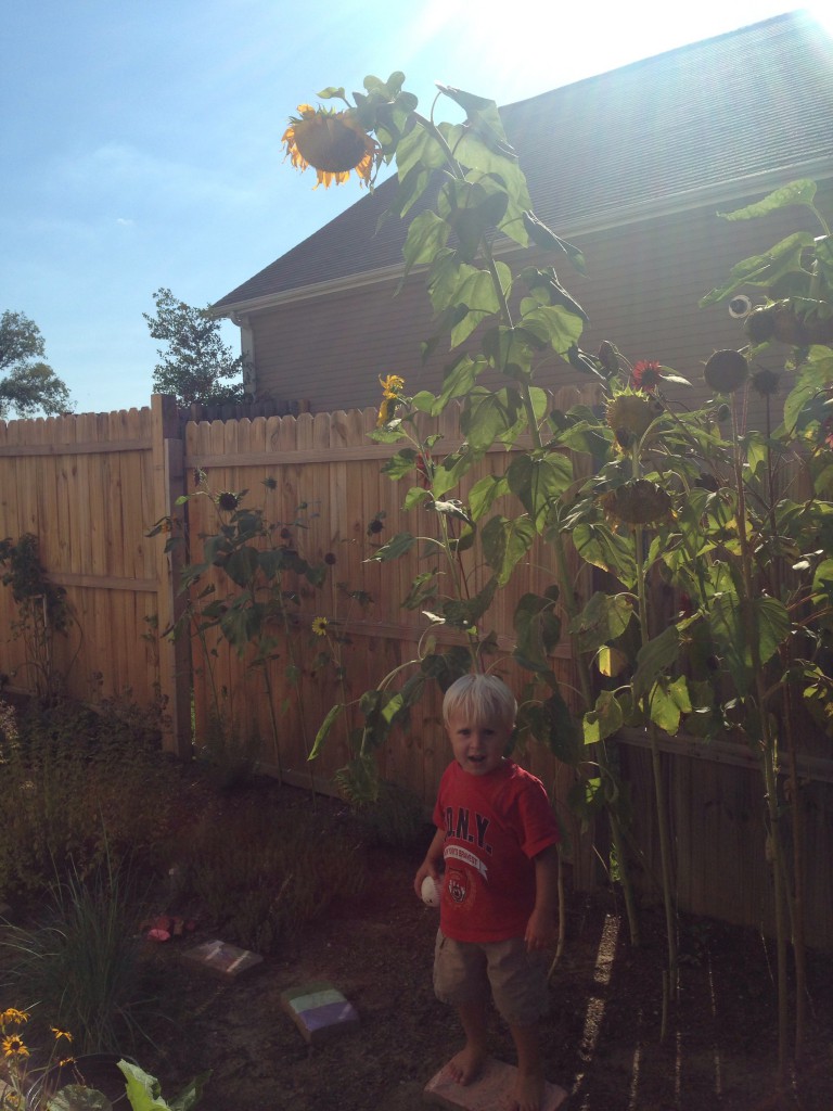 Jonas and I were toodling around in the backyard this afternoon, watering the garden and checking out the growing things, while Xander and Roman were taking an afternoon nap. I showed him the chamomile that came back from the seeds we planted last year. He was SUPER excited and said, “Like chamomile tea…like Peter Rabbit?” and wanted to know if we could make some chamomile tea. So, we did. He loved cutting the flowers, putting them into the tea infuser, steeping it in a cup of hot water, adding some of MeMe’s spiced apple cider honey, and taking sips over and over again. Who knew I’d have a fellow herbal tea enthusiast in my four and a half year old son? Love it…love him.