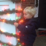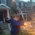 Once we got back home from our Thanksgiving trip to Grandma and Grandpa’s in Virginia and got settled back in, we busted out the Christmas decorations. Here are a few of the crew helping out with the lights…