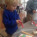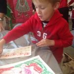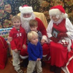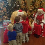 The boys loved Breakfast with Santa! It’s really so well done with tickets to see Santa and crafts and games to keep little hands and feet busy while they’re waiting. Among the favorites were the Christmas card making, the gift tag stamping, and the glittery pipe cleaner ornament beading. It was great fun to help the boys out with their Christmas crafts, eat a yummy (second) breakfast, say hello to friends, and see Santa and Mrs. Claus.