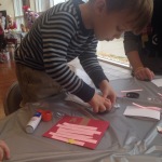 Here are a few pictures of us hard at work and of his gloriously festive finished product.