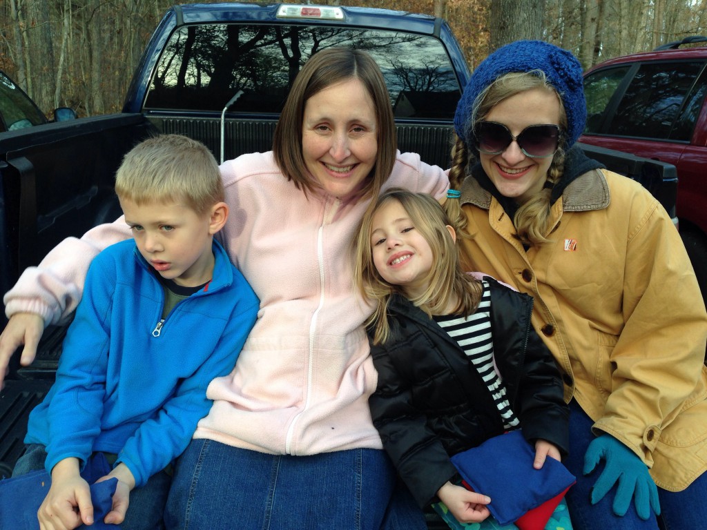 We spent Thanksgiving in Virginia this year at Grandma and Grandpa’s house with Grandma and Grandpa, The Seyfrieds, The Longs, and The Paccassis. We enjoyed catching up with family and friends, playing in the woods, eating good food together, working on craft projects, going to mass (although Jonas and I missed it for a trip to the clinic for pink eye), and joining in the annual turkey games.
