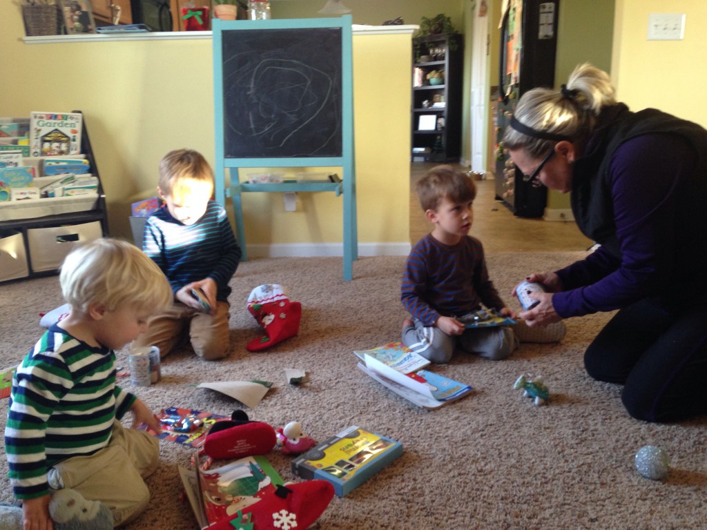 We spent Christmas Eve in Gallatin with MeMe and PaPa, Aunt Jean, Aunt Julie, Cousins Jordan and Dylan, and Aunt Jeanne. We ate a delicious lunch (MeMe would totally win Master Chef), had fun watching the kids open their presents (I will never forget MeMe and PaPa coming down the hallway with a big wheel and a cool hat for each boy), and enjoyed a White Elephant gift exchange with the adults (the stealing part of the exchange is always so interesting and funny). Eat, drink, and be merry!