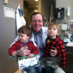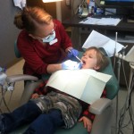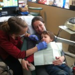So, Xander went for his first visit to the dentist today!!! He got to sit in the cookie monster chair and watch Jonas get his teeth counted, cleaned, polished, and flouridated first, so he was totally cool when it was his turn to do the same…with one condition…that he get to sit in mommy’s lap. He did GREAT, and I was so proud of him and so proud of Jonas too…they were really such little men. Here’s a picture of them with our sweet hygienist (Mrs. Connie) and dentist (Dr. Robertson).