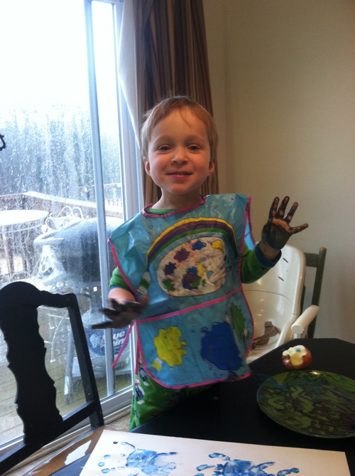 We woke up this morning to a beautiful snowfall…the boys and I couldn’t wait to get out in it after breakfast. They all enjoyed exploring and after Roman went down for his morning nap, the big boys had fun painting snow (I don’t think we’ve done that since Jonas was Xander’s age!!!)