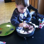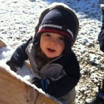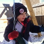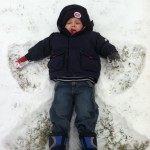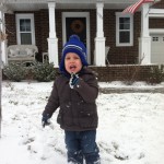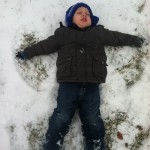 We waited until Roman went down for his morning nap and Daddy got home to bundle up and head out to play. The boys made snow angels and tasted the snow, we all threw snowballs, and (as our snowman building attempts failed) Tom made a snow volcano…complete with baking soda and red vinegar. Yay for weekend snow days!!!
