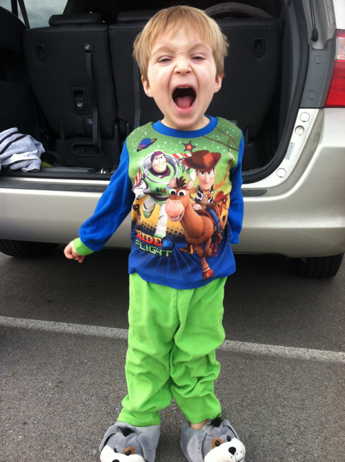They are having Wacky Winter Days at Jonas’ preschool this month and next month…Backwards Day, Mis-Match Day, Sports Day, and Pajama Day…it’s so much fun for the little friends. Today was Backwards Day, and Jonas got a SUPER big kick out of putting everything on backwards. (He was so into it…he was even trying to walk backwards!)