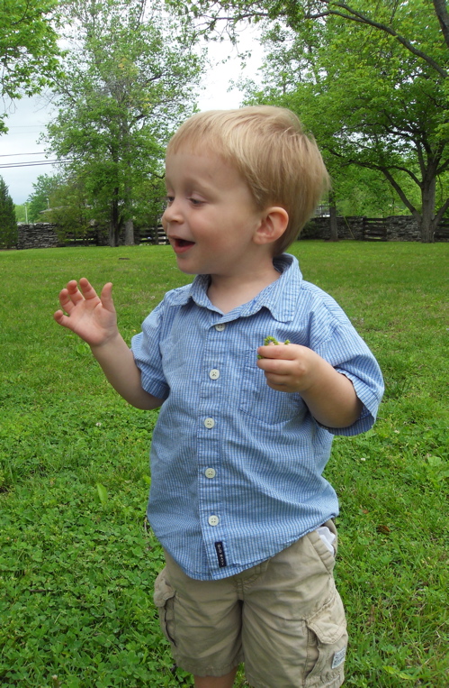 In his thirtieth month, Jonas is: amazing us once again with his sentence composition (“Mommy, I love you so so much, and I’m so glad you’re here to love Jonas”); using “probably”, “actually”, “possibly”, and “definitely” in the correct context; rocking out on his tricycle; reveling in the treasures he finds on our walks (berries, nuts, mossy sticks, snails, ladybugs, rocks, flowers, etc.); signing up for his first summer reading program at the library; having a blast with the kids in our neighborhood mom’s club; and saying goodbye to his pacifier (he’s doing surprisingly well without it but…shh…don’t remind him it’s gone).